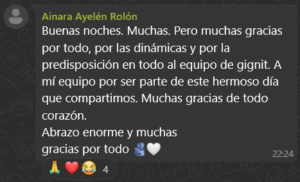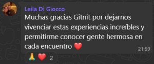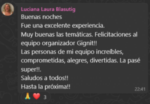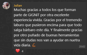 Cada persona que participa en nuestros eventos se convierte en GIGNiTER. Es alguien que aceptó el desafío de salir de su zona de comodidad y decidió crear un mundo diferente. Les pedimos a nuestros participantes que nos comenten qué les pareció la jornada y nos regalaron comentarios increíbles. Podés ir a ver más en nuestra cuenta de Instagram @gignit.ok.